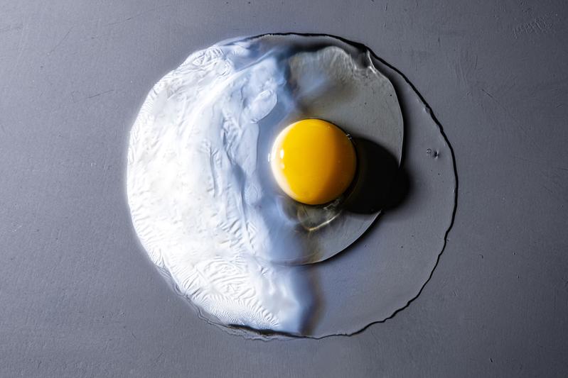 Beim Erhitzen bilden die Proteine im ursprünglich transparenten Hühnereiweiß ein engmaschiges, undurchsichtiges Netz.