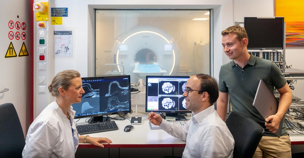 Neuer Algorithmus für klinische MRT-Geräte macht Brustuntersuchungen schneller und zuverlässiger. Die Magnetresonanztomographie (MRT) ist eine sensitive Methode zur Kontrolle von Silikonimplantaten. Dennoch kann eine zuverlässige Untersuchung der Implantate herausfordernd sein, da eine klare Abgrenzung zwischen Silikon und Fettgewebe auf den Bildern schwierig ist. Ein interdisziplinäres Forschungsteam an der Technischen Universität München (TUM) hat nun einen neuen Algorithmus entwickelt, der die Qualität der MRT-Bilder verbessert, indem er vollautomatisch und zuverlässig Wasser, Fett und Silikon gleichzeitig darstellt. Für die Brustrekonstruktion nach einer…