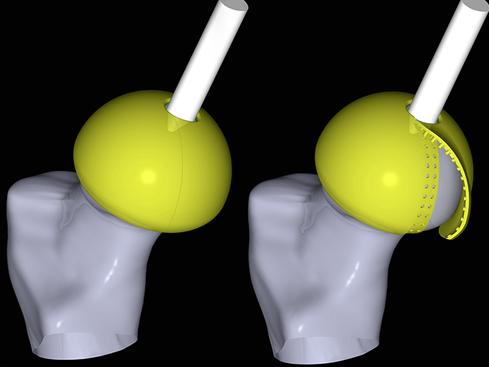 Um ein Cochlea-Implantat in das Ohr eines tauben Patienten einzubringen, muss ein Hals-, Nasen-, Ohrenchirurg hinter der Ohrmuschel manuell einen sehr exakten…