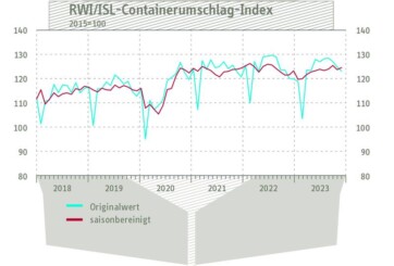 RWI/ISL-Containerumschlag-Index: Der Containerumschlag-Index des RWI – Leibniz-Institut für Wirtschaftsforschung und des Instituts für Seeverkehrswirtschaft und Logistik (ISL) ist nach der aktuellen Schnellschätzung im Mai gegenüber dem Vormonat auf saisonbereinigt 123,4 Punkte gestiegen. Damit steigt der Containerumschlag inzwischen seit vier Monaten in Folge. Er hat das Niveau vom Sommer vergangenen Jahres aber noch nicht wieder erreicht. Das Wichtigste in Kürze: Der Containerumschlag-Index des RWI – Leibniz-Institut für Wirtschaftsforschung und des Instituts für Seeverkehrswirtschaft und Logistik (ISL) ist saisonbereinigt im Mai auf…
