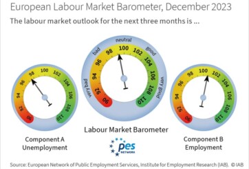 Ausblick nach Talfahrt für 2024 wieder verbessert. Das IAB-Arbeitsmarktbarometer verzeichnet den ersten Anstieg seit fast einem Jahr Abwärtstrend. Der Frühindikator des Instituts für Arbeitsmarkt- und Berufsforschung (IAB) steigt im Dezember um 0,4 Punkte auf 99,9 Punkte und liegt damit nur knapp unter dem neutralen Wert von 100. Auch das European Labour Market Barometer steigt erstmals seit sieben Rückgängen in Folge wieder und liegt nun bei 99,2 Punkten. „Die Arbeitsagenturen sehen gerade für die Arbeitslosigkeit kein einfaches Jahr voraus, aber die…