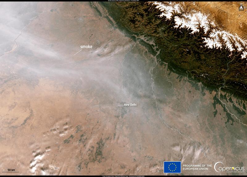 Dichte Rauchwolken aus Strohfeuern über Indien.