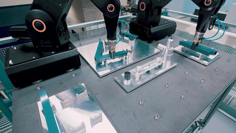 Das flexible Produktionssystem vereint die Produktivität und Genauigkeit von Spezialmaschinen mit der Flexibilität und Wandlungsfähigkeit von Industrierobotern. (Foto: wbk, KIT)
