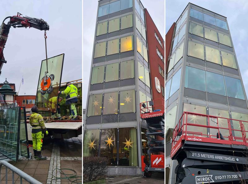 Installation erster Isolierglaseinheiten mit schaltbaren, elektrochromen Schichten im Dezember 2022 in Uppsala, Schweden
