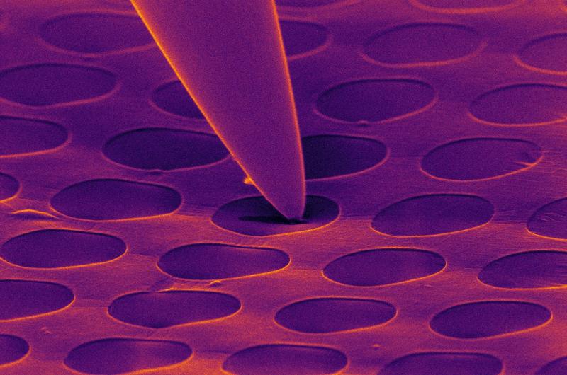 Zum Reinigen auf der Nanoskala wird eine feine Metallspitze genutzt.