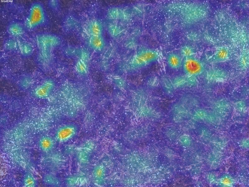 Das Deep Learning-Modell zur Korngrößenbestimmung hingegen kann beliebig große Bauteilbereiche bewerten und weist eine hohe Genauigkeit und ideale Reproduzierbarkeit auf. Um das zu ermöglichen, wurde das Modell mit Bilddaten gefüttert, die zuvor durch das Auge der Expertinnen und Experten klassifiziert worden waren. Mithilfe dieser Bilder des Industriepartners wurde das Modell trainiert, Mikrostrukturen in Stahl zu erkennen und zu klassifizieren. Die Innovation dabei ist, dass eine durchgängig objektive und automatisierte Bewertung der Korngröße gelingt. Die Daten sind, bedingt durch unterschiedliche Bewertung der Korngrößen durch die Metallographinnen und Metallographen, mit einem Rauschen behaftet. Jedoch wird bei der Optimierung des Modells das Rauschen, sprich die Fehlbeurteilung, herausgefiltert. Indem das Modell stetig Bilder erhält, die mit einer Über- und Unterschätzung der Korngröße annotiert sind, lernt es eine mittlere Repräsentation und wird trainiert, die Mikrostrukturen sicherer zu bewerten. »In diesem Fall sind für das Training weder außerordentlich saubere Daten noch große Datenmengen erforderlich«, sagt Dr. Ali Riza Durmaz, Wissenschaftler am Fraunhofer IWM. Eine von Dr. Durmaz und seinem Team entwickelte Webapplikation visualisiert die Ergebnisse. Dabei schaffen Ansätze der erklärbaren Künstlichen Intelligenz mehr Transparenz bei der Entscheidungsfindung des Modells.