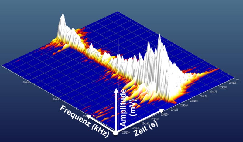 AE-Signal – Eine 3-Dimensionale Auswertung des detektierten risstypischen Signals nach der Auswertung.