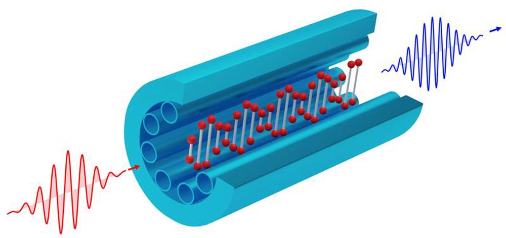 Lichtquanten – Photonen – bilden die Grundlage der Quantenschlüsselverteilung in modernen kryptografischen Netzen. Bevor das enorme Potenzial der Quantentechnologie voll ausgeschöpft werden kann, gibt sind jedoch noch einige Herausforderungen zu bewältigen. Für eine davon wurde jetzt eine Lösung gefunden In einer in der Fachzeitschrift Science veröffentlichten Arbeit berichten die Teams um David Novoa, Nicolas Joly und Philip Russell vom Max-Planck-Institut für die Physik des Lichts über einen Durchbruch bei der Frequenzumwandlung einzelner Photonen auf der Grundlage einer mit Wasserstoffgas gefüllten…