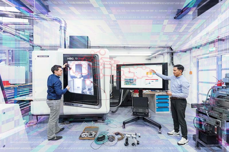 Während der Mitarbeiter die digitale Bedienanleitung im Sichtfeld seiner Datenbrille liest, behält er die Hände frei, um den Rüstvorgang einzuleiten, und den…
